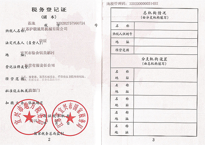 江蘇滬聯(lián)通用機(jī)械有限公司 地 址:江蘇省宜興市徐舍鎮(zhèn) 聯(lián)系人:殷國忠 電 話:0510-87600008 傳 真:0510-87600007